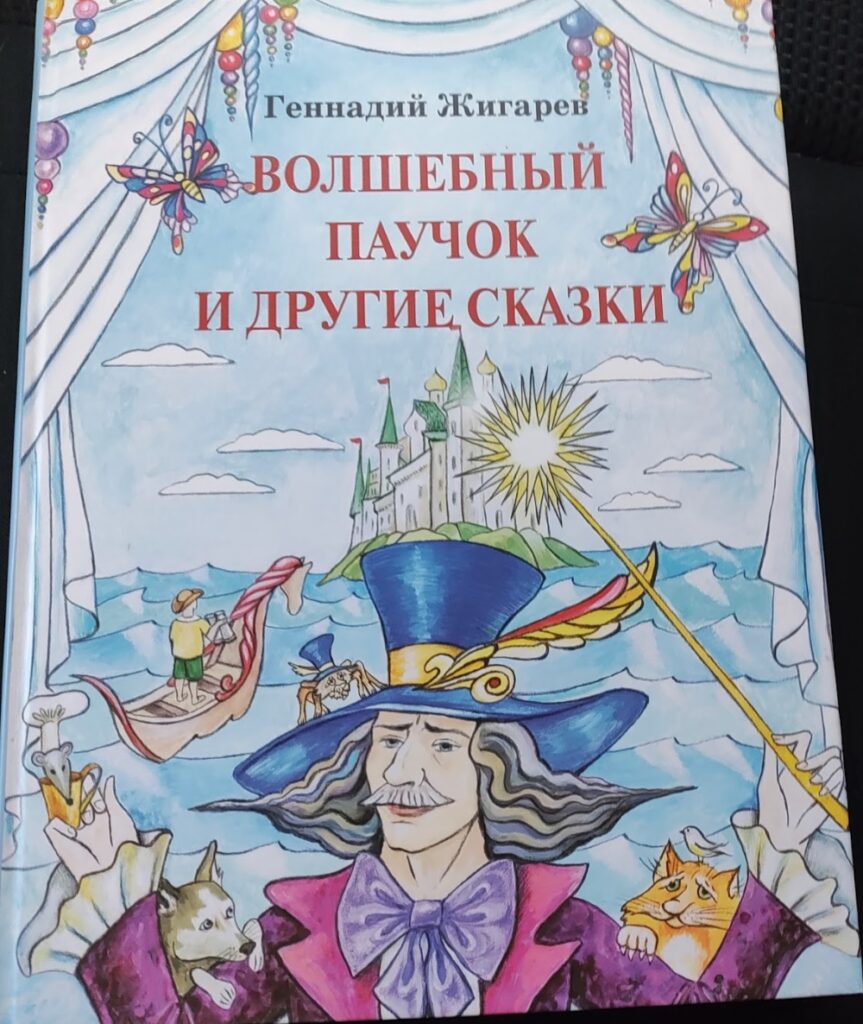 Вторая иллюстрированная книга на русском языке — «ВОЛШЕБНЫЙ ПАУЧОК И ДРУГИЕ СКАЗКИ». Автор Геннадий Жигарев, иллюстратор А. Тихомирова.